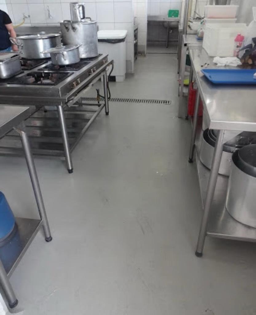 As cozinhas comerciais são espaços de alta atividade, onde a limpeza constante e a resistência a derramamentos são essenciais. Os pisos industriais garantem um ambiente de trabalho seguro, resistente e higiênico para os funcionários, além de cumprir normas de segurança alimentar.
